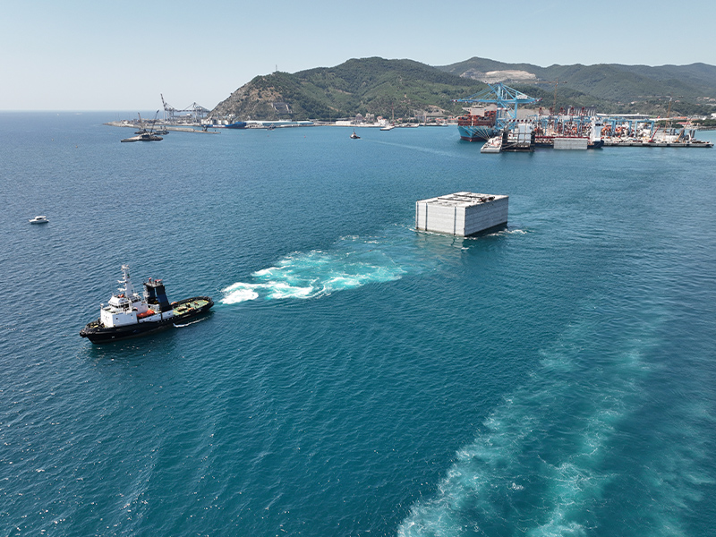 Posato il primo mega cassone della Nuova Diga Foranea di Genova. Alto come un palazzo di 11 piani, è il primo dei 35 cassoni più grandi destinati ai fondali più profondi